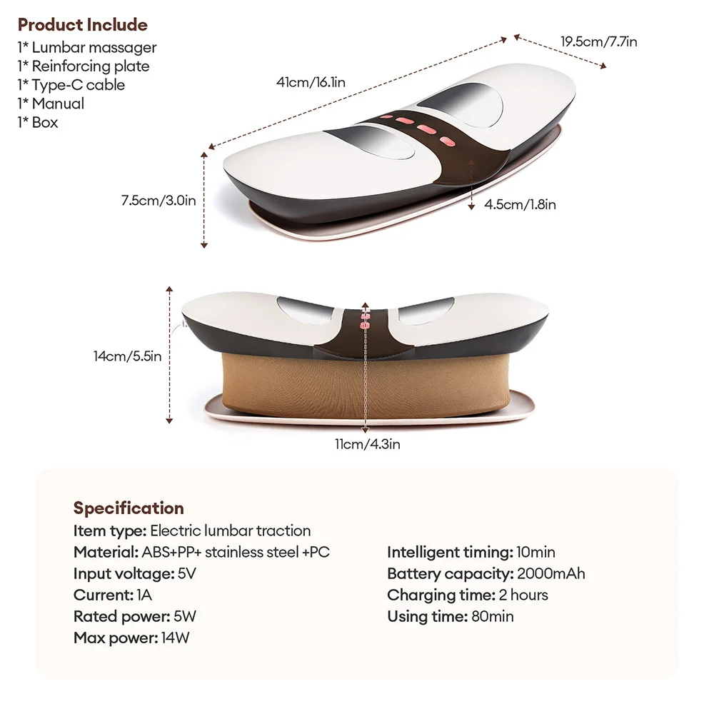 Adjustable Lumbar Traction Massager Electric Back Massage Device Vibration Waist Massager Waist Spine Support Massage Machine Wa