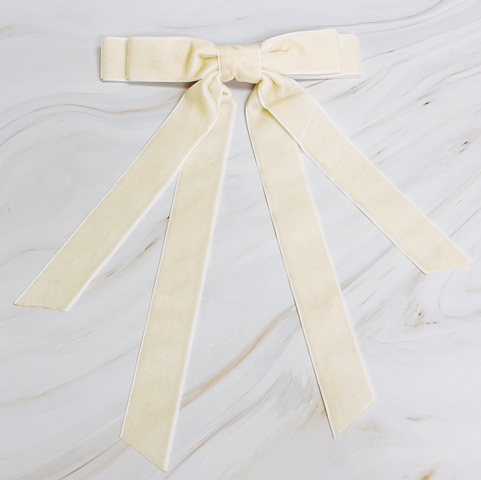 This Double Bow Double Sash Hair Clip features a unique and classic design that adds a touch of elegance to any hairstyle. The double bow and double sash create a sophisticated look, perfect for any occasion. Crafted with precision and style.
