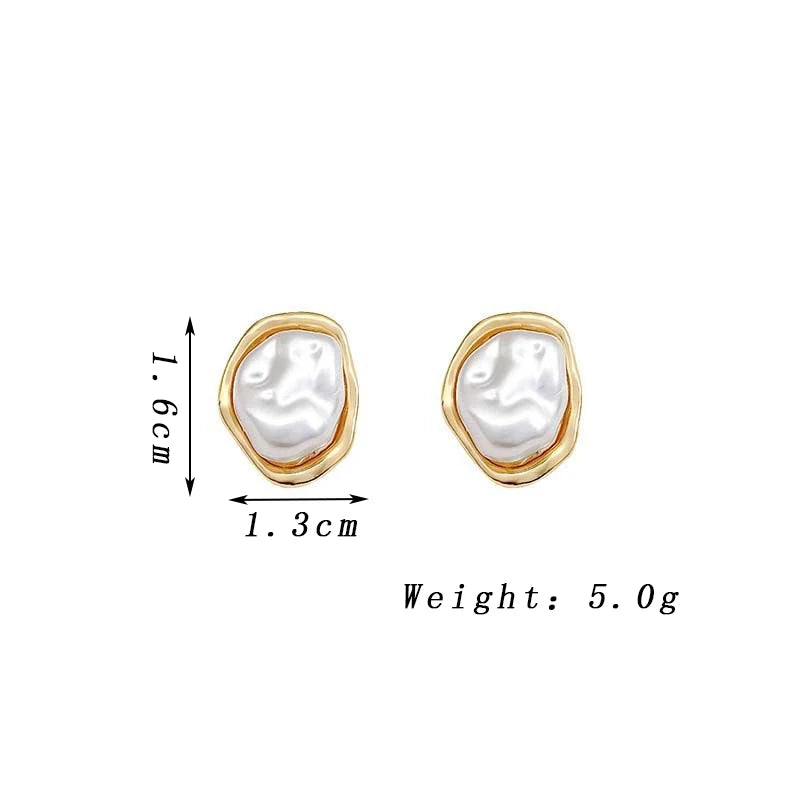 Irregularity Geometric Retro Personality Earrings for Women Golden Metal Imitation Pearl Stud Earrings Party Simple Jewelry Gift